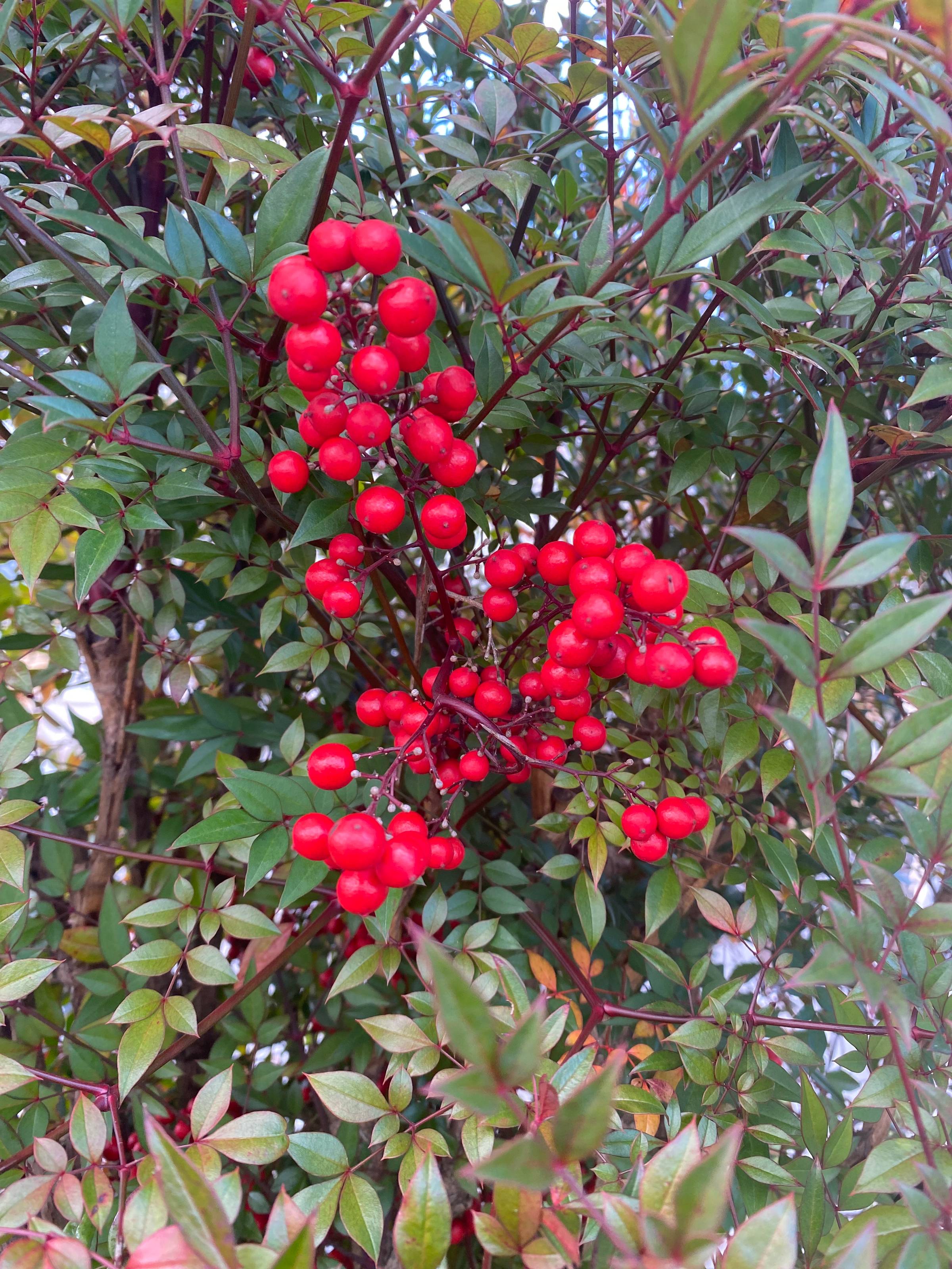 I don't know if they are called Christmas Berries officially. I just know that each Christmas there is a row of these shrubs in my backyard that show up. So pretty and festive for the season.
