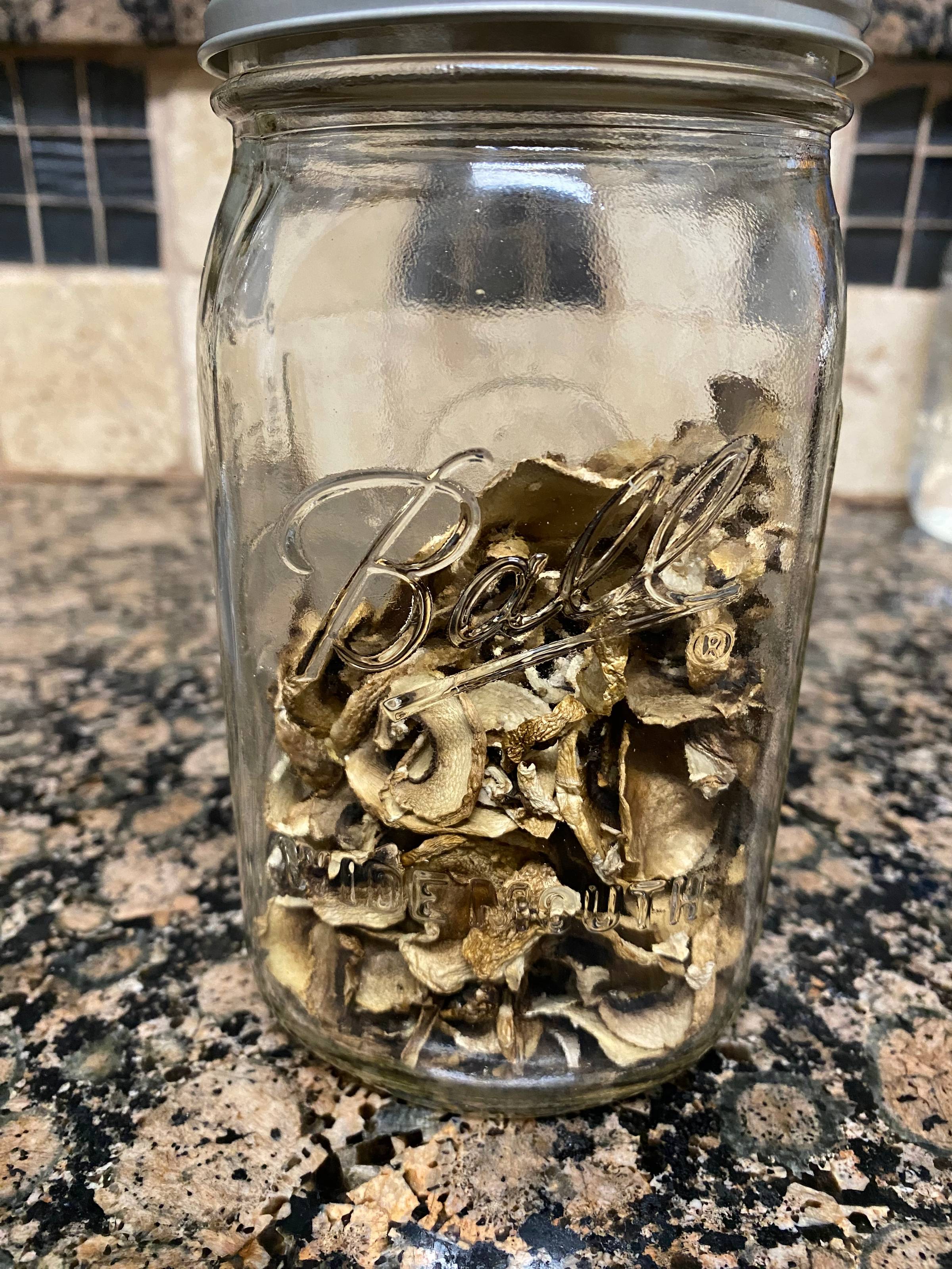 Once dried, place them in a mason jar and they are ready to use when I need them. It's an easy way to keep mushrooms in your life.